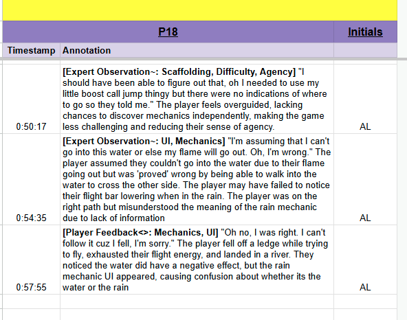 After conducting the study, we came to several interesting conclusions about the weaknesses and strengths of the AI agent. The main issue present in the AI video analysis was the software’s inability to pick up on the footage and detect non-verbal behavior. The only time the AI did so successfully was when the player's speech matched their nonverbal actions, such as a player saying, "I am about to go through the gate." Another big issue that often arose when using the AI was the lack of focus on the most important details. As the AI used the entire transcript as input, all player feedback was deemed equally important, which prevented it from focusing on critical issues.